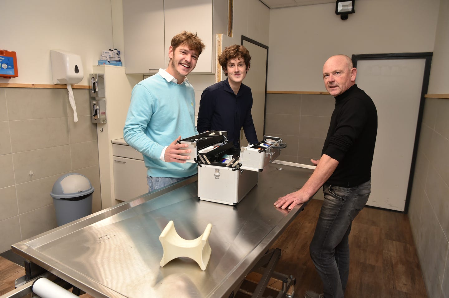 ‘Koffie?’ Kitho gaat voor me uit de trap op naar het kantoor op de eerste verdieping. Daar zit zijn broer Hayo (20), die sinds acht maanden de planning van vader Peter heeft overgenomen. ‘Ik heb dezelfde kronkel in mijn hoofd als hij. Hetzelfde gevoel voor wie je op welke melding af stuurt. En ik raak niet gestrest als er vier meldingen tegelijk binnenkomen.’
